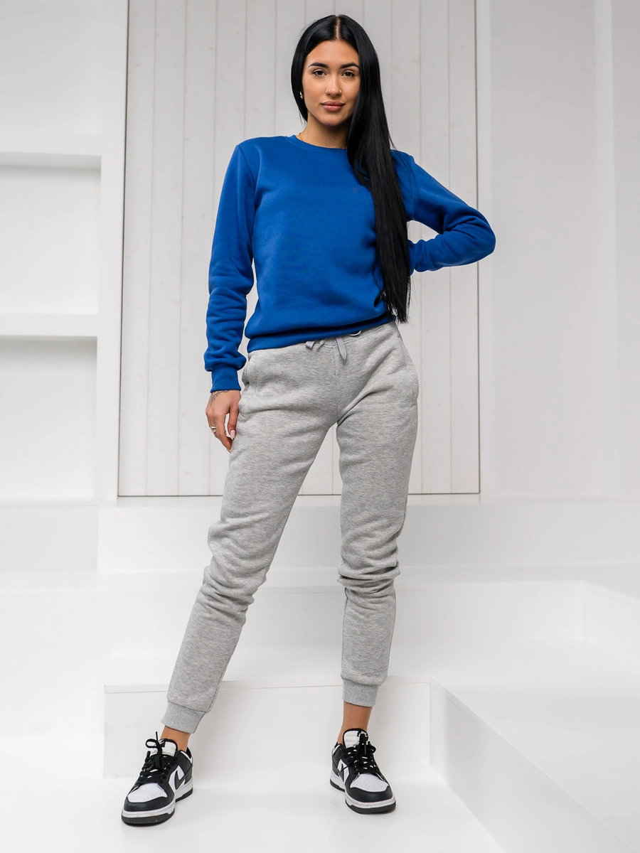 Minimalistisk dam sweatshirt W01A1 från Bolf-kollektionen. Den har klassisk rak design och passar den kvinnliga silhuetten bra. Den är enfärgad, overhead-typ och tillverkad av ett material av hög kvalitet. Botten och ärmarna är ribbade. Den har crew neckline med en elastisk trim. Denna basic sweatshirt passar ihop med det mesta.