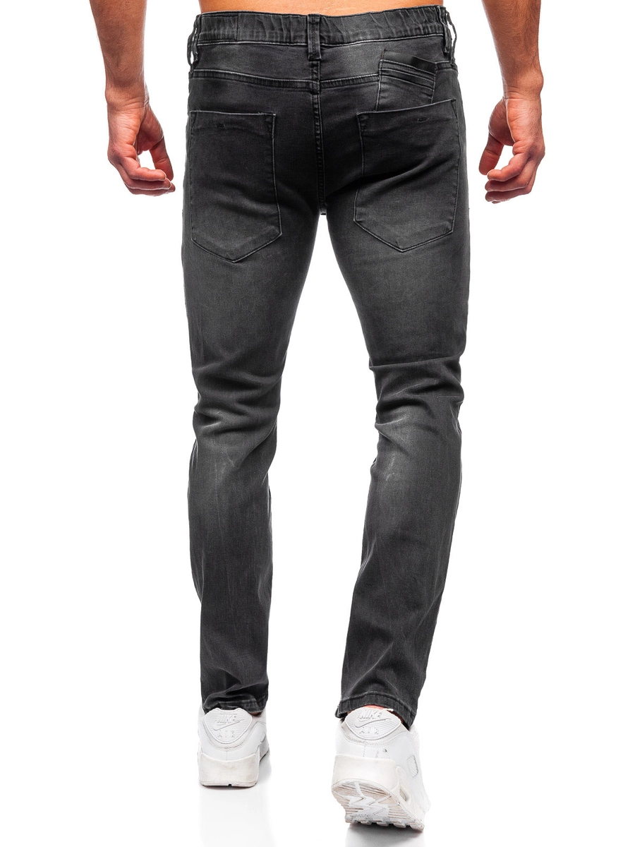Klassiska svarta slim fit jeans för män MP0018N från Bolf-kollektionen. Byxor av slim fit modell, med knappar, passar den manliga kroppsformen perfekt. De har väldigt praktiska fickor, två fram och två bak. Snygga nötningar och skuggningar på benen samt en dekorativ ficka fram ger dem ett unikt utseende. Jeansbyxor är en perfekt bas för en vardaglig outfit. För en typisk street-stil passar de utmärkt ihop med en T-shirt, en skjorta och en skinnjacka. Med hjälp av dessa kan du skapa många olika snygga stilar!