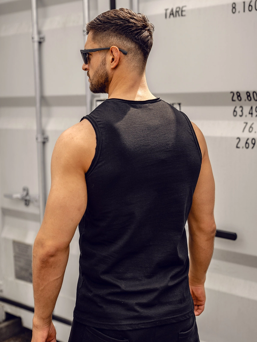 Klassiskt och enkelt svart linne från Bolf-kollektionen. Det är bekvämt, luftigt och tillverkat av högkvalitativ bomull. Den presenterade modellen är ett bra val både till gymmet eller för det vardagliga användandet ihop med short eller jeans.