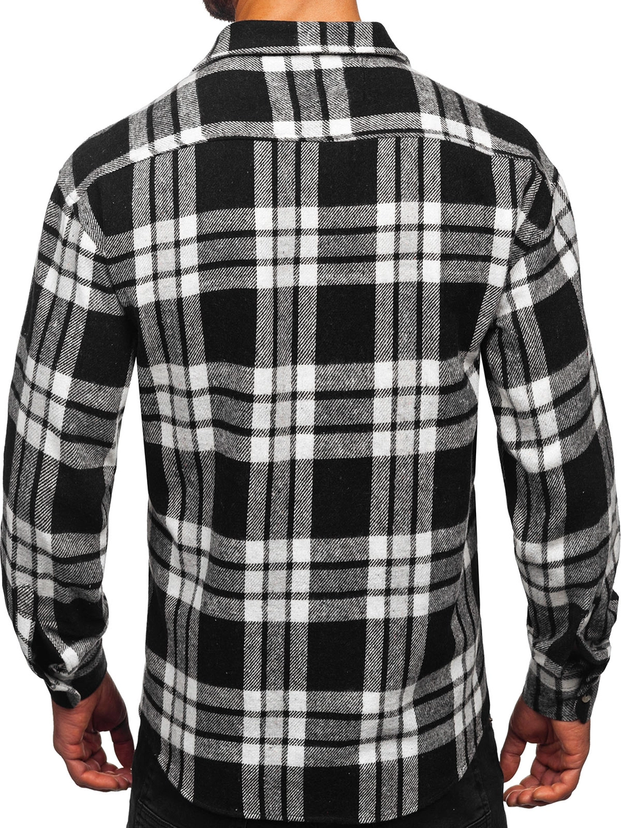 Feedback från kunder Herr Rutig långärmad flanellskjorta Vit-Svart Bolf 2025-3