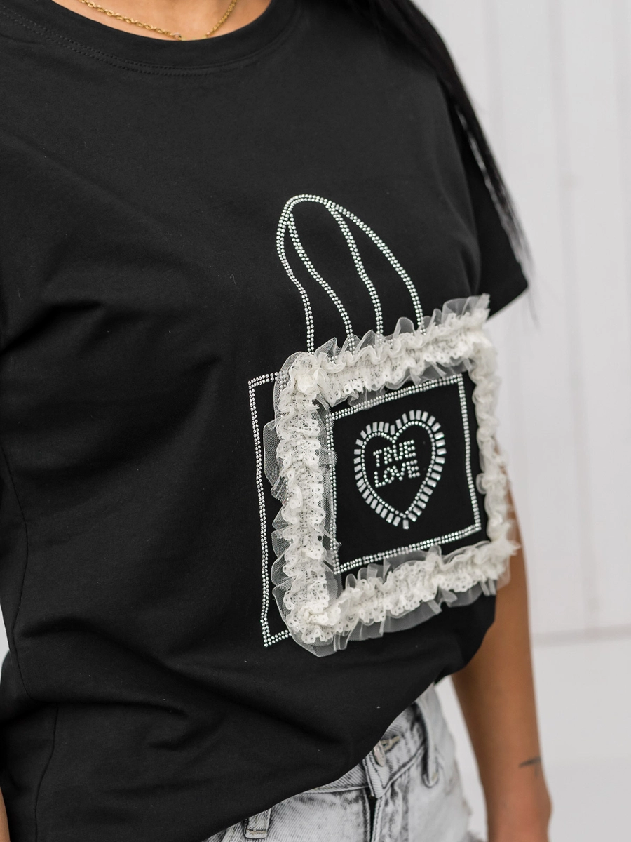 Feedback från kunder Dam T-shirt med tryck Svart Bolf 97T2102