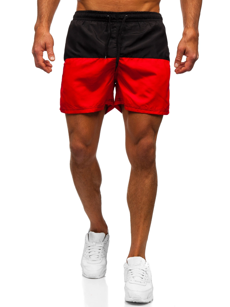 Fantastiska svarta och röda badbyxor för män HM058A från Bolf-kollektionen!Shortsen finns i unika färger som gör att din stil aldrig blir tråkig! De kan justeras i midjan med en kraftig resår och dragsko så de anpassar sig perfekt efter kroppen. Invändigt har de ett par meshshorts. Två fickor fram och en bak som stängs med kardborre ger plagget en praktisk karaktär. Badshortsens sportiga stil passar perfekt för semestern vid havet eller helt enkelt på en varm dag. I kombinatione med ett linne skapar du en sommaroutfit som du kan känna dig bekväm och snygg i!