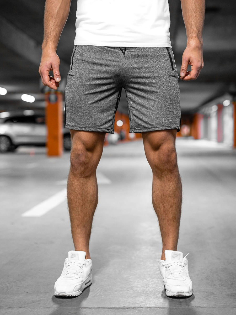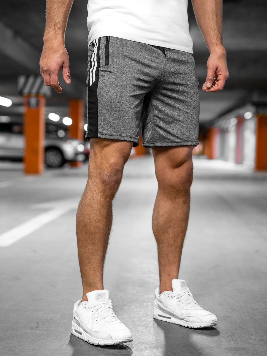 Bekväma grafitgrå mjukisshorts 68006A från Bolfs kollektion. Tack vare att de kan justeras i midjan med en resår och dragsko anpassar de sig perfekt efter kroppen. Detta är ett av de mest trendiga typerna av shorts, vilket gör att de blir ett måste inför sommaren! Material av hög kvalitet ger en härlig känsla av komfort när de används, till och med under det mest krävande träningspasset. Tack vare två utvändiga fickor med dragkedjor blir shortsen ännu mera praktiska. Skapa ditt perfekta set med en sweatshirt och en väst. De passar även bra i en mer urban outfit om du kombinerar med en T-shirt och en skinnjacka.