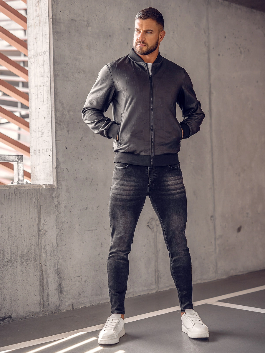 Klassisk svart herr bomberjacka i skinn 3A65 från Bolfs kollektion. Nertill och vid ärmsluten finns en mudd vilket gör att den skyddar bra mot kyla och anpassar sig bra efter kroppsformen. Den stängs med en dragkedja och har en ståkrage. Jackan har ytterfickor med dragkedjor och en innerficka utan knäppning i vilken du säkert kan gömma det mest nödvändiga. Jackans mångsidighet möjliggör dess ovanliga användning i sport- och fritidskläder. Med jeans och en tröja skapar du en perfekt, avslappnad look.