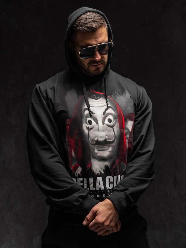 Herr Huvtröja med tryck Svart Bolf 141013A