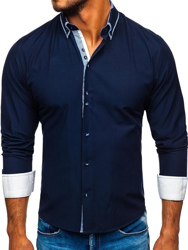 Herr Elegant Långärmad Skjorta Marinblå Bolf 6857