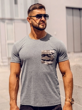 Herr Camo T-shirt med tryck med ficka Grafitgrå Bolf 8T85A