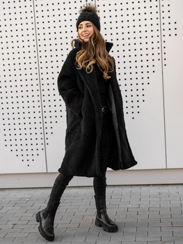 Dam Varm Lång Vinterkappa Svart Bolf AN105