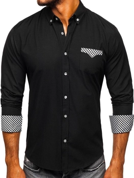 Herr Elegant Långärmad Skjorta Svart Bolf 6944