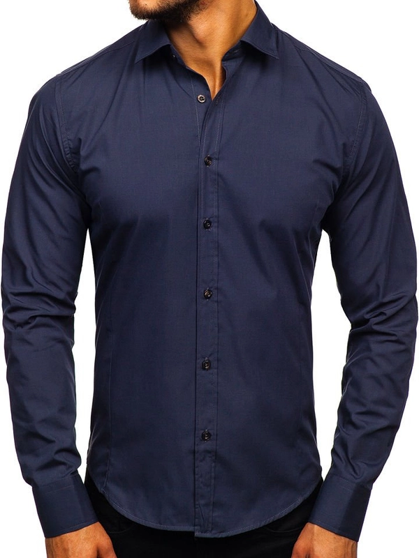 Herr Elegant Långärmad Skjorta Marinblå Bolf 1703