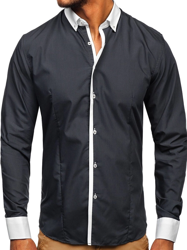 Herr Elegant Långärmad skjorta Grafit Bolf 2782