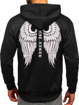Herr Huvtröja med tryck och känguruficka Svart Bolf M276