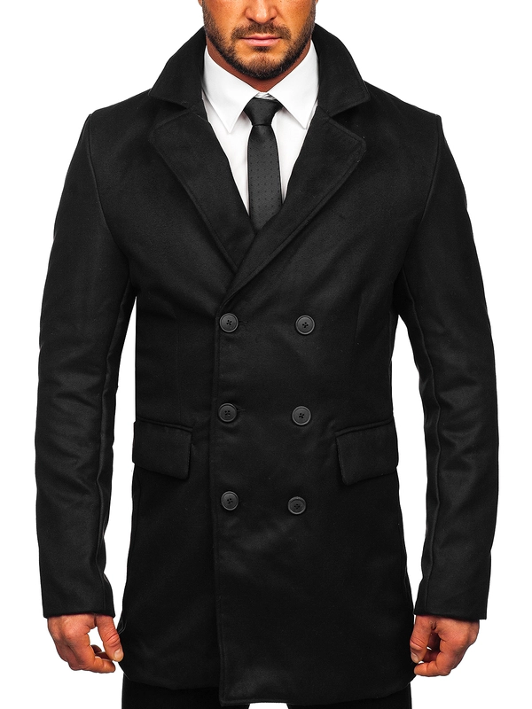 Herr Dubbelknäppt vinterkappa Svart Bolf M3142A