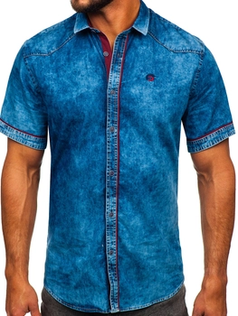 Niebieska koszula męska jeansowa z długim rękawem Denley MC704B