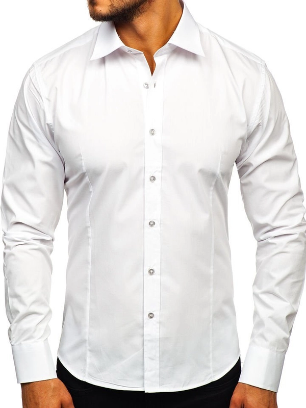 Herr Elegant Slim Fit Långärmad Skjorta Vit Bolf MS13