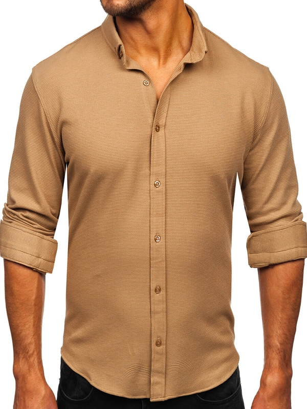 Herr Elegant Långärmad Skjorta Ljusbrun Bolf 1703