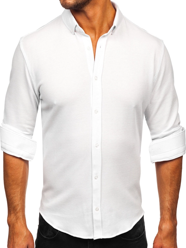 Klassiska långärmade skjortor för män är ett absolut måste i herrgarderoben eftersom de passar till många tillfällen och tillför elegansen, oavsett kundens ålder. En vit eller himmelsblå skjorta i par med en kostym är ett tidlöst set som är perfekt för varje formellt evenemang. Långärmad är dock inte enbart reserverad för formella outfits. I vårt erbjudande finns det gott om fashionabla skjortor, som trots att de är långärmade, utmärker sig av avslappnad stil. Det beror mycket på färger och design. Starka färger och uttrycksfulla mönster låter dig ha lite extra coolhet och den typen av skjortor är perfekta för vardagsbruk - att arbeta, om det inte finns några klädkodsregler, på en dejt, ett möte med vänner eller ett familjeevenemang som inte är formellt . Det är värt att matcha dem med jeans eller trendiga chinobyxor.