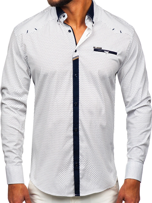 Herr Elegant Långärmad Skjorta Vit Bolf 19603