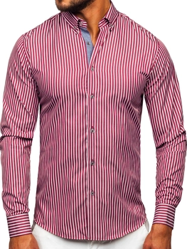 Herr Elegant Randig Långärmad Skjorta Vinröd Bolf 0909