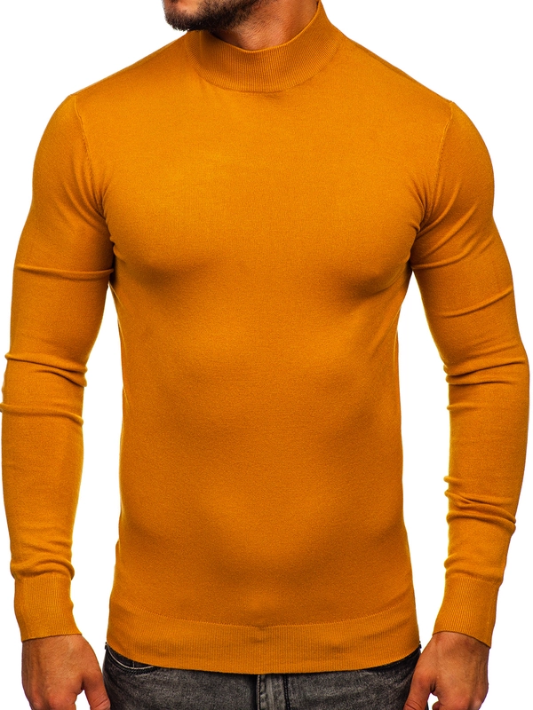 Herr Basic Tröja med halvpolo Kamel Bolf YY05