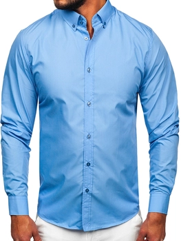 Herr Elegant Långärmad Skjorta Himmelsblå Bolf 5821-1