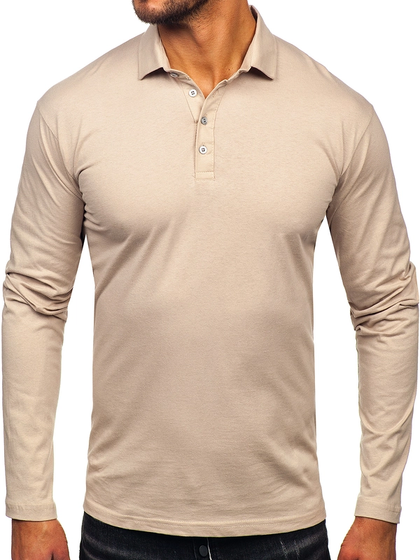 Herr Långärmad bomullspikétröja Beige Bolf 5119